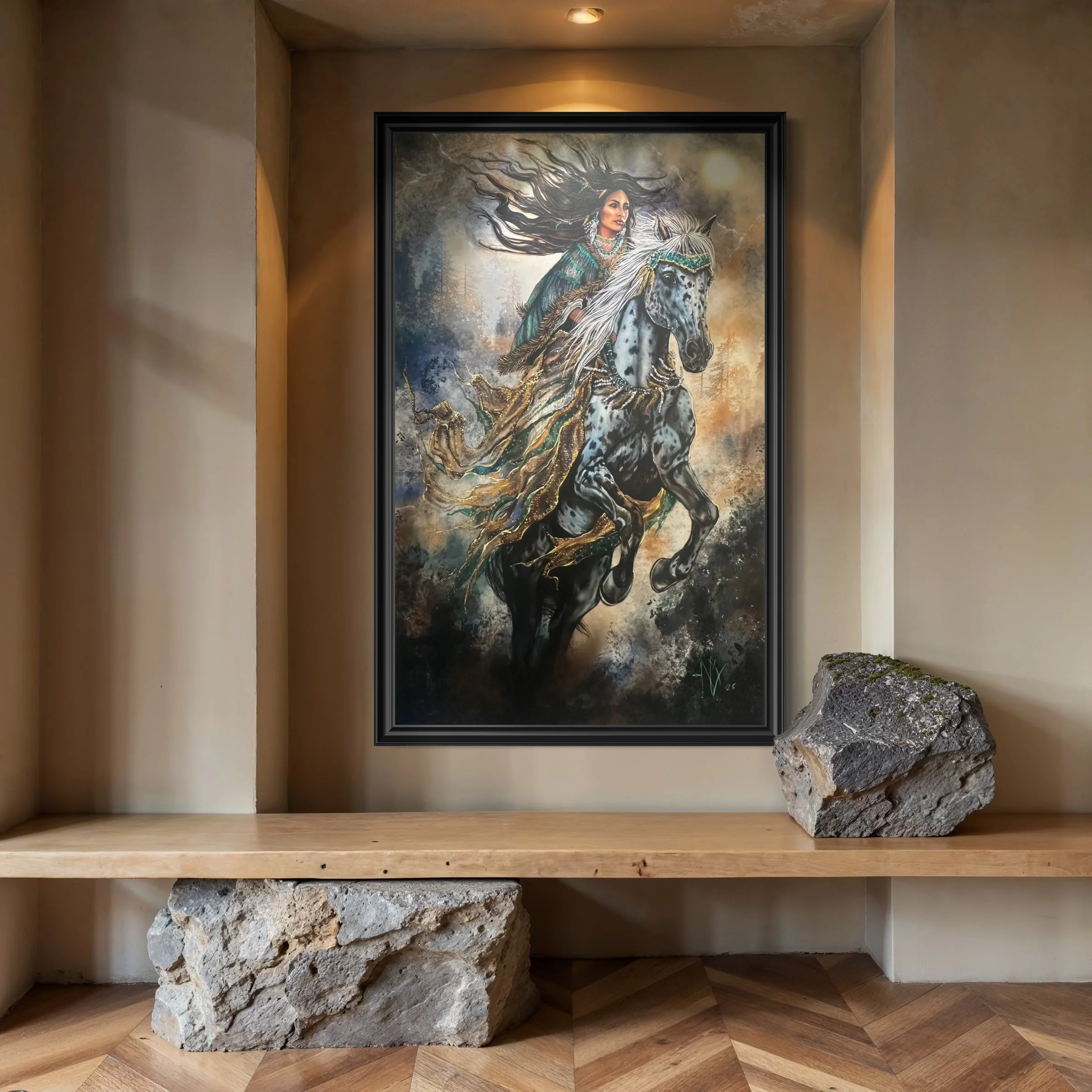 Reveres the horse, an animal deeply woven into the fabric of Indigenous life, symbolizing freedom and strength.