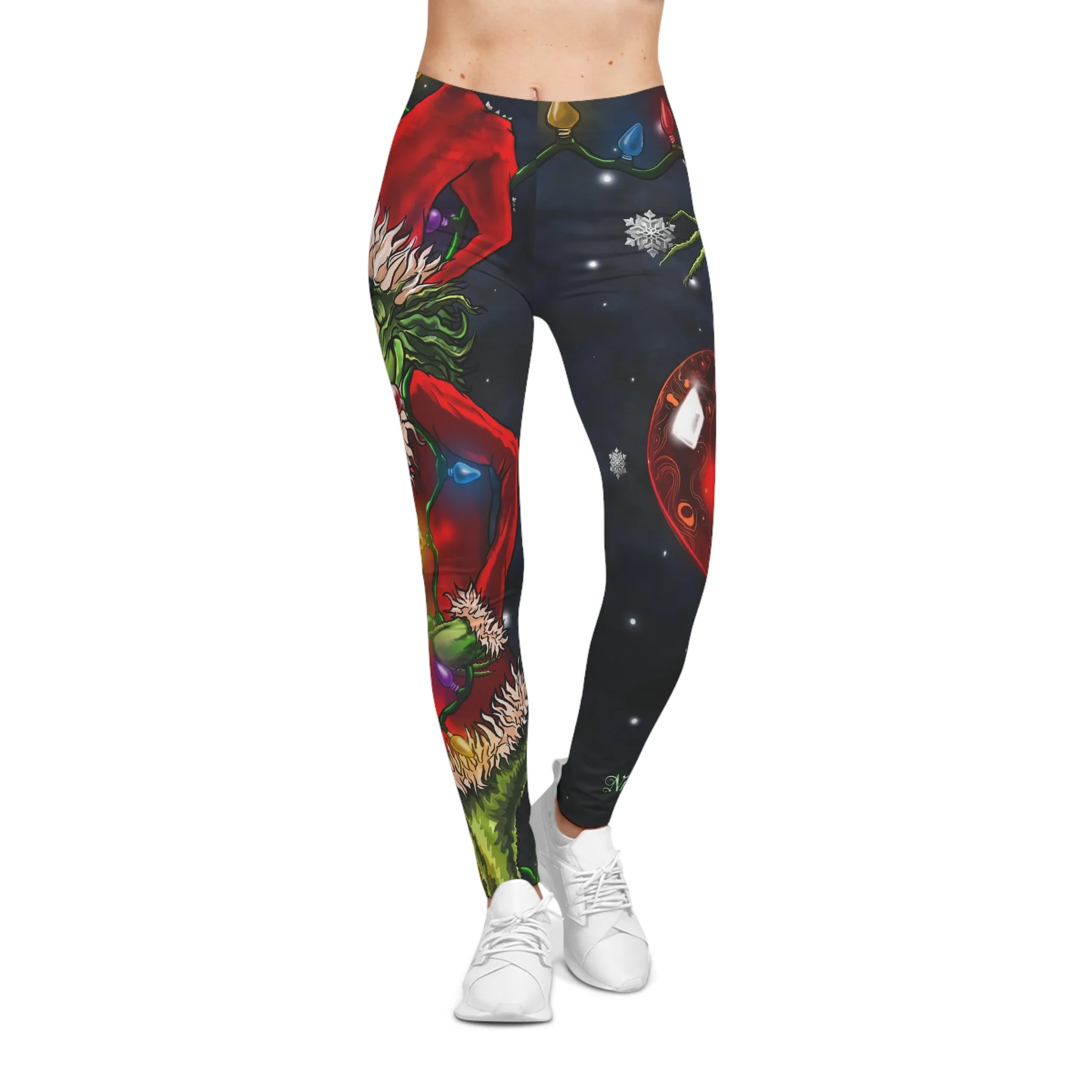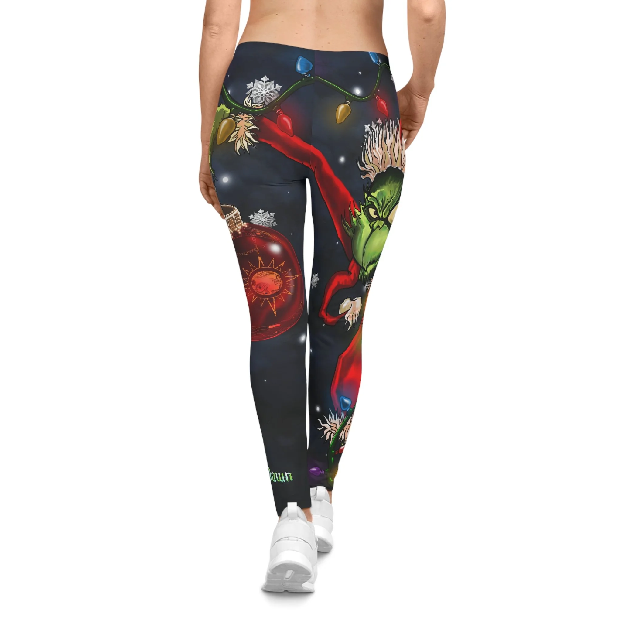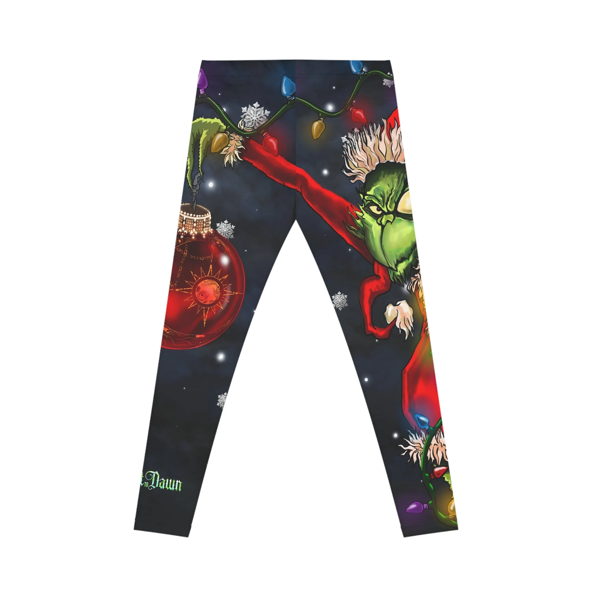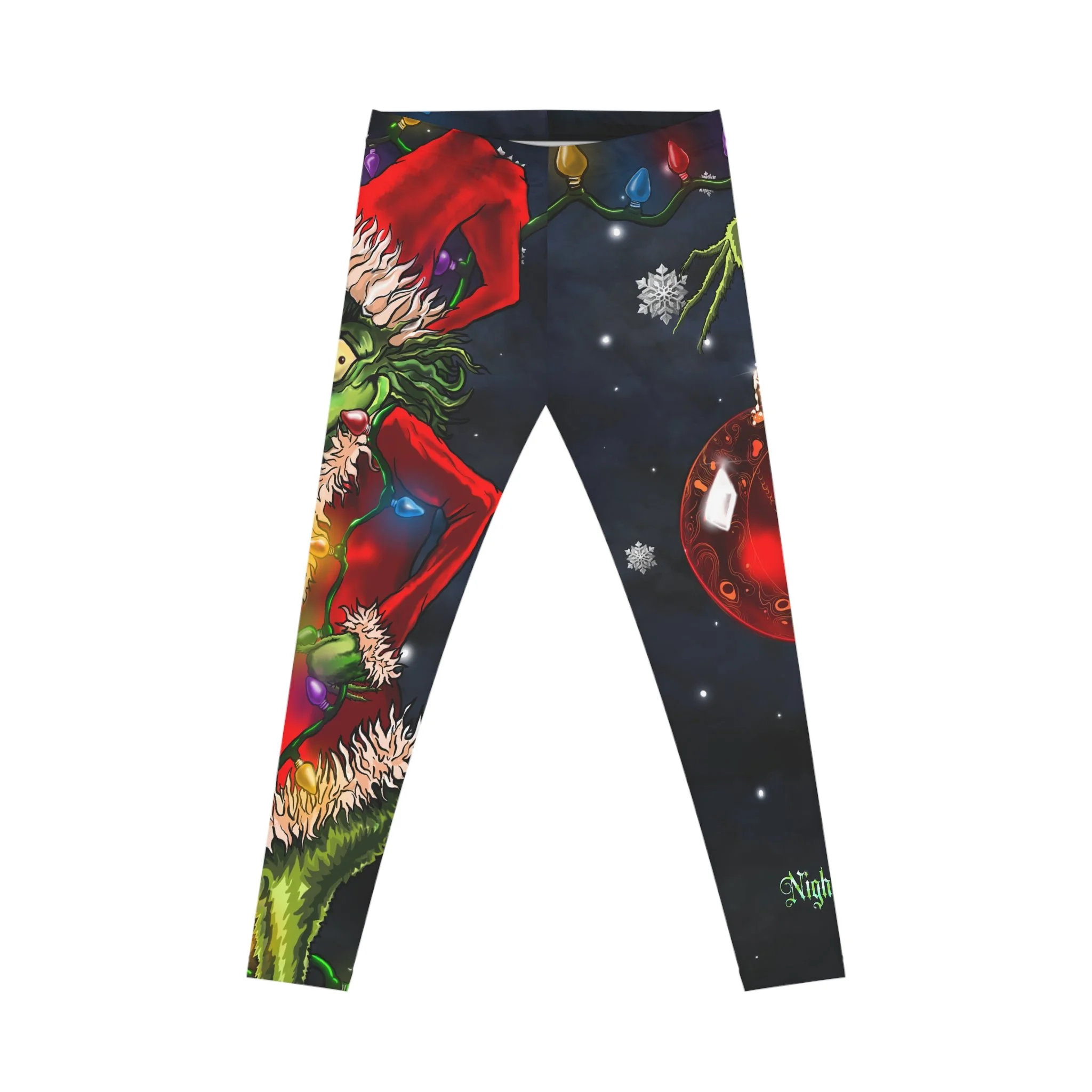 Featuring everyone’s favorite green mischief-maker tangled in Christmas lights, clutching his red ornament and sack of stolen joy – these leggings scream “Naughty List” in the most festive way possible. Perfect for ugly Christmas sweater parties, lounging by the fire, hitting the gym, or spreading maximum Grinch vibes wherever you go!